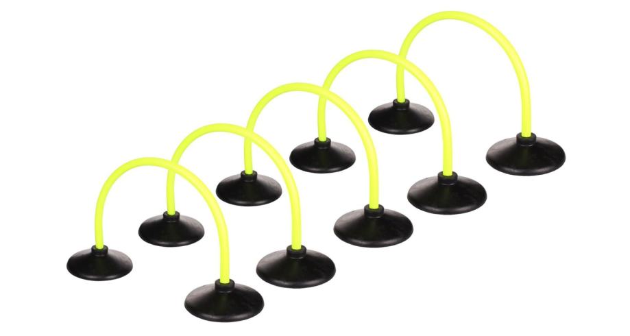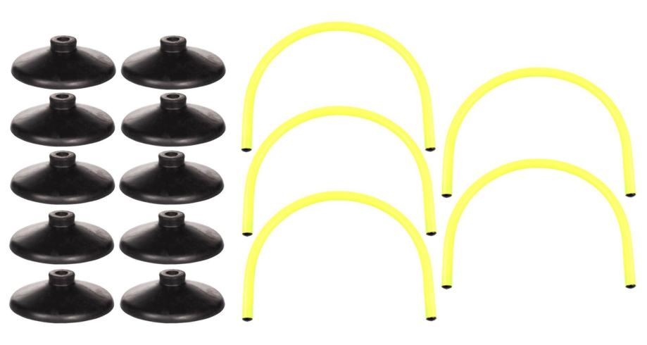 Plastični luk u neon žutoj boji Passing Arc Base praktična je i provjerena pomoć za trening koordinacije nogometaša usmjerenih na uvježbavanje dodavanja i točnosti šuta na tlu. Plastični cijevni luk promjera 25 mm širok je 46 cm, visok 33 cm i opremljen je s dvije gumene podloge, koje osiguravaju stabilnost luka bilo da se trenira vani na travi ili umjetnim površinama ili na dasci unutar dvorane.