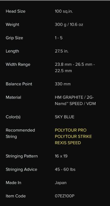 Tenis reket YONEX EZONE 100 PLUS, grip 4 3/8, naspanan sa Kirschbaum Pro line II 1.20, odigran nekoliko gemova