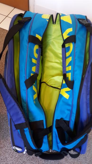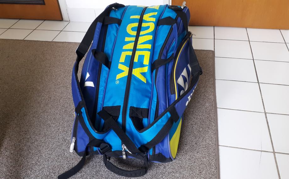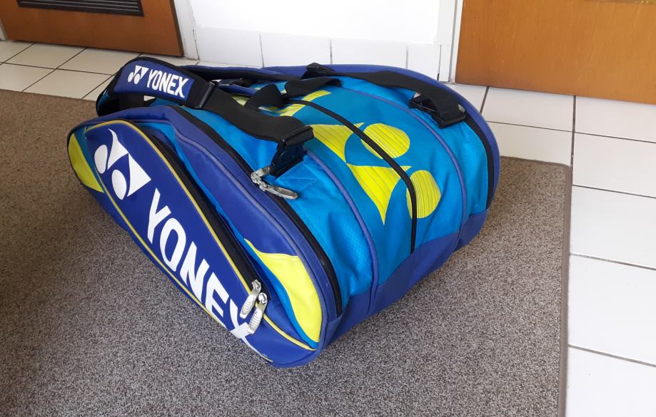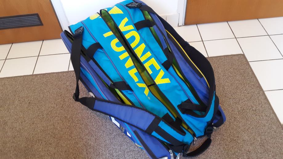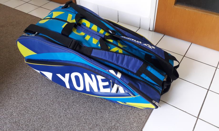 Prodajem tenisku torbu Yonex pro, veličina medium/large, premium kvaliteta i izrada, tri velika pretinca i nekoliko manjih, korištena za skladištenje reketa i opreme. Stanje 10/10, što je vidljivo i na slikama.