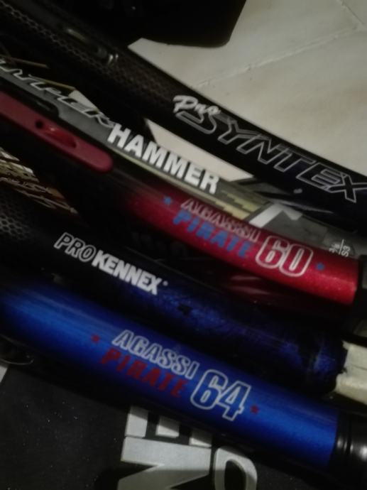 Head Agassi Pirate 60 i 64, Wilson Hypercarbon, Pro Kennex i Pro Syntex. Dimenzije 34x26 cm. Prodajem iskljucivo u kompletu, cijena nije fixna.