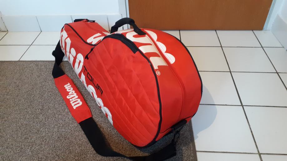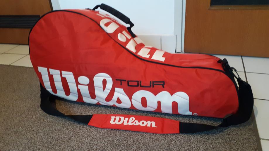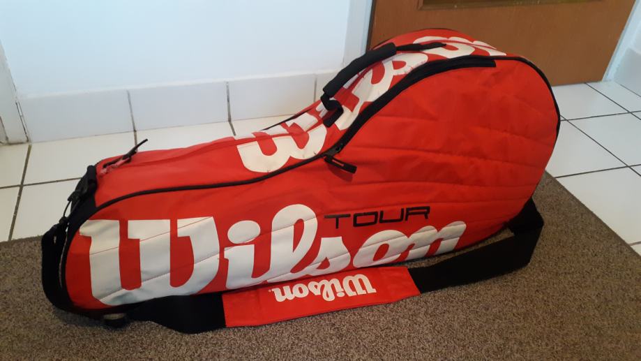 Prodajem torbu za tenis Wilson tour, očuvana, uredna, za dva reketa i opremu. Stanje vidljivo na slikama.
