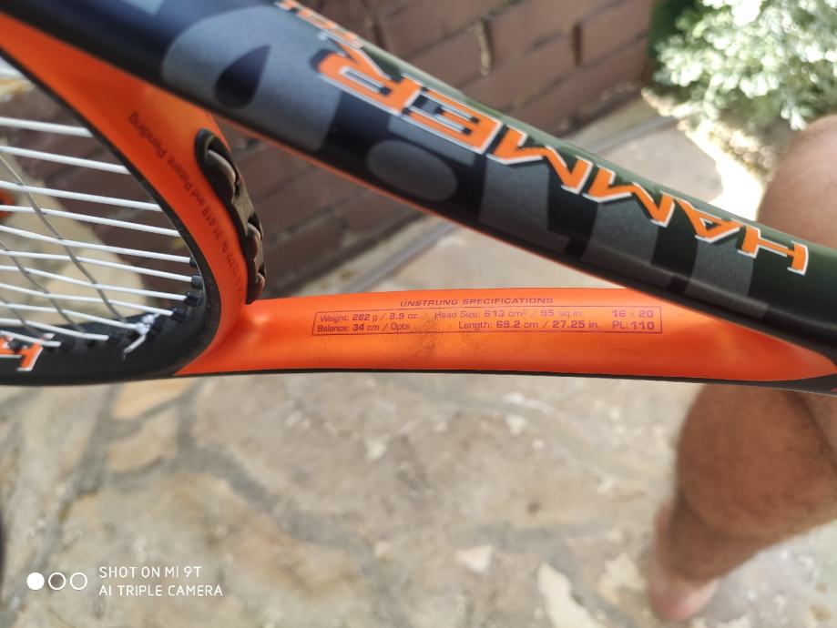 282 grama, 4 drska , 95 glava reketa , 16/20 raspored žica , reket u odlicnom stanju.