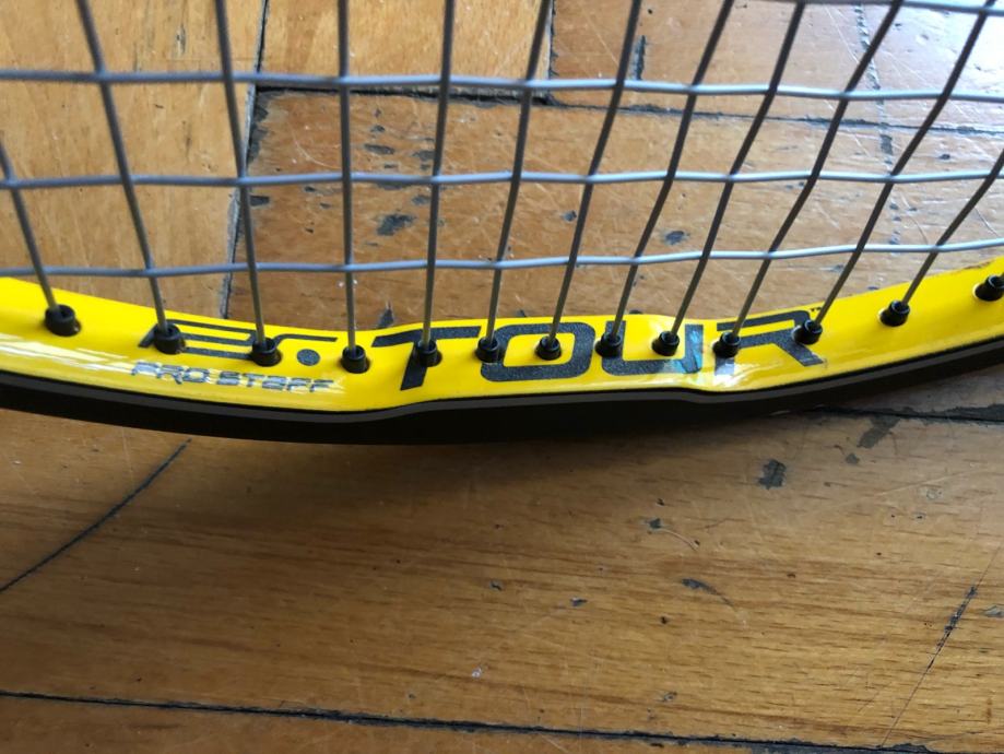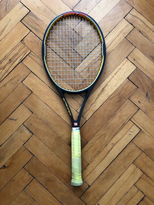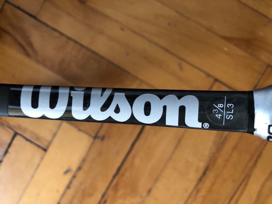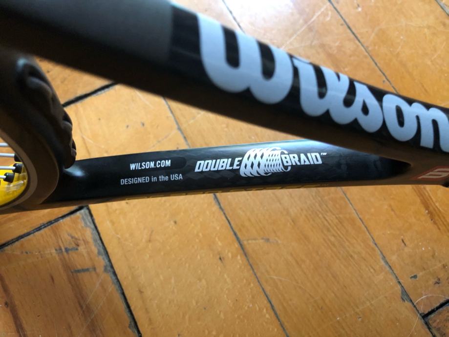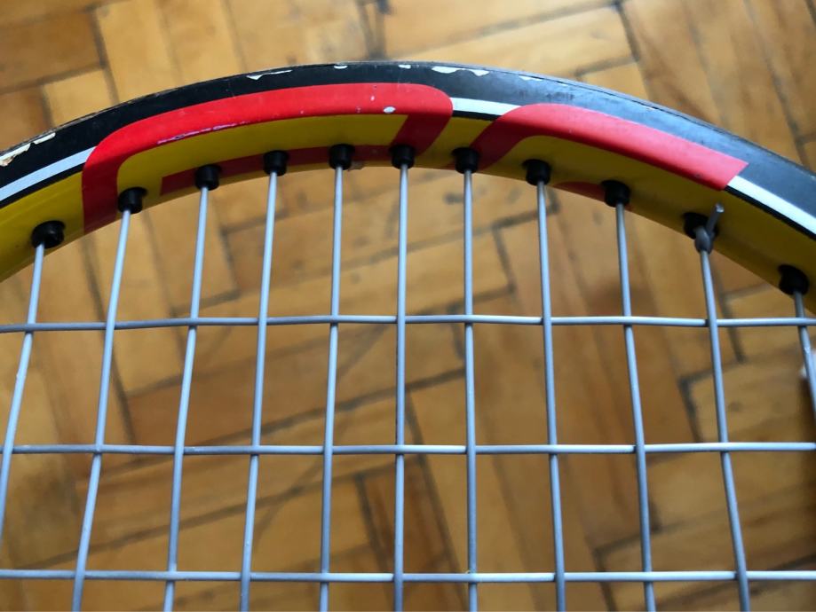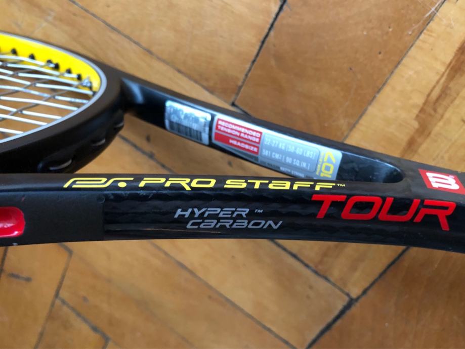 Prodajem odlično očuvan Wilson Hyper Pro Staff Tour 90 reket. Nigdje napuknut, samo ima par kozmetičkih tragova od igranja. Nasljednik klasičnog ProStaffa 85, klasičan reket za igrače kojima ne smeta težina i drže do kontrole. Jedan od Pro Staff modela s kojima je igrao Federer. Našpanan je Luxilon Alu Power strunom 23/22, s kojom je odigrano svega par sati. Grip 3.