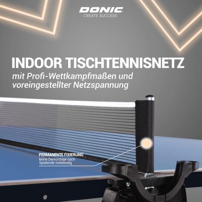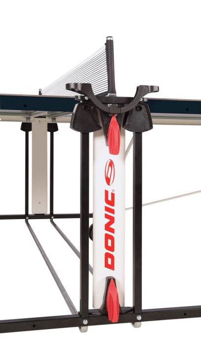 Mrežica se sigurno neće olabaviti tijekom igre jer je trajno pričvršćena za stol. Ipak je moguć trening u „play back“ položaju, tj. tako da je jedna polovica stola podignuta.