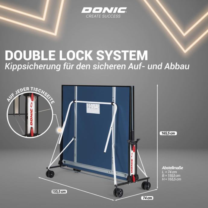 Ploča debljine 19 mm u plavoj boji nije samo moderna, već osigurava i dobar odskok lopte. Stoga s ovim stolom za stolni tenis možete jednostavno trenirati kod kuće!