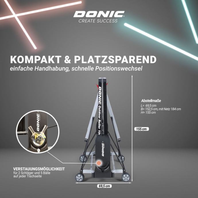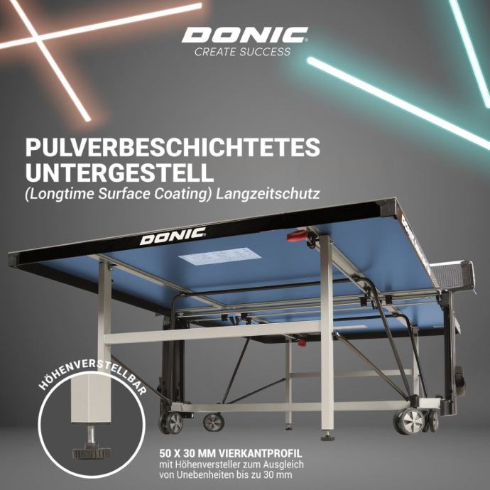 Pristupačan stol za stolni tenis za vanjsku upotrebu, vrhunske Donic kvalitete. Otporan na vremenske uvjete.
