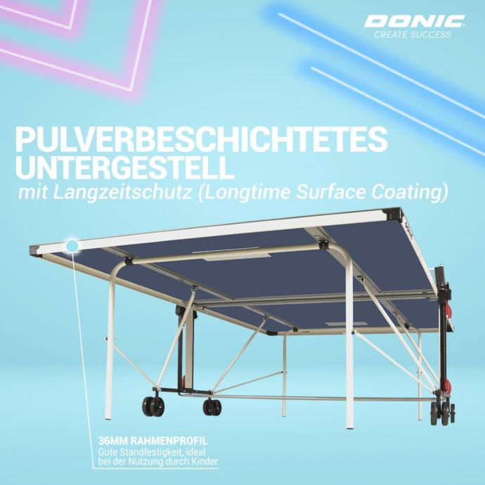 Pristupačan stol za stolni tenis za vanjsku upotrebu, vrhunske Donic kvalitete. Otporan na vremenske uvjete.