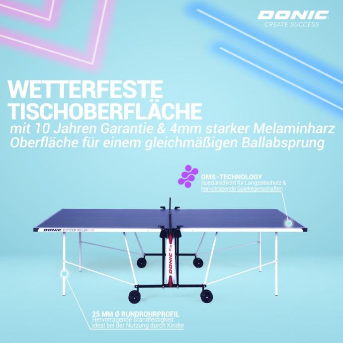 Stol za stolni tenis Donic Outdoor Roller Fun | vanjska upotreba
