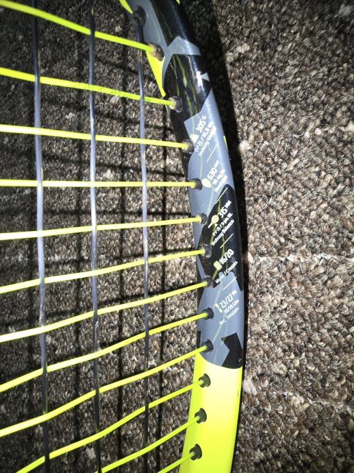 Na prodaju potpuno novi reket. Koristen 2 termina i onda nanovo prespanan. Bez tragova koristenja. Grip 3.