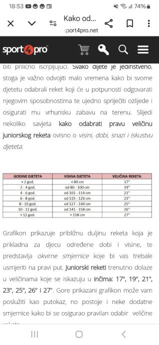 Na zadnjoj fotografiji su približne veličine reketa s obzirom na dob/visinu.