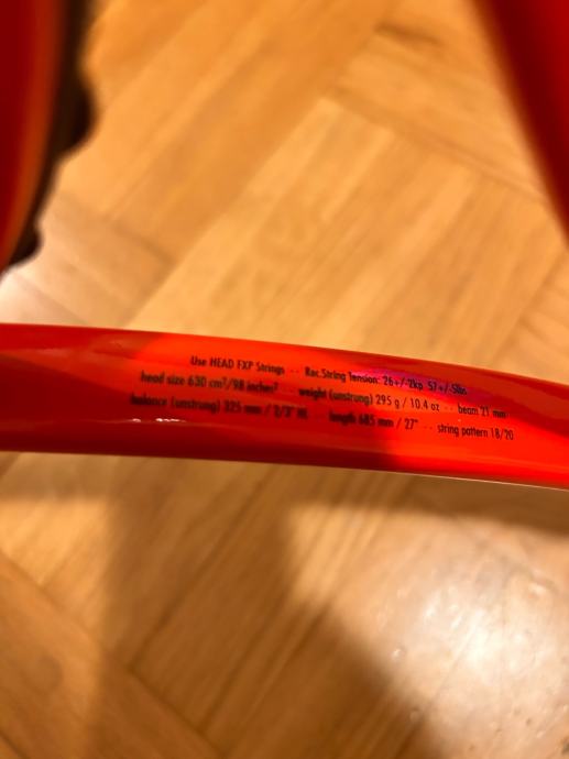 Korišten kao drugi reket, jako rijetko. Našpanan prije 3 mj. Luxilon Alu power 23/22 kg.