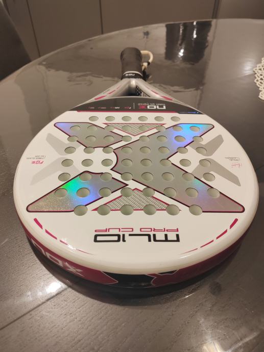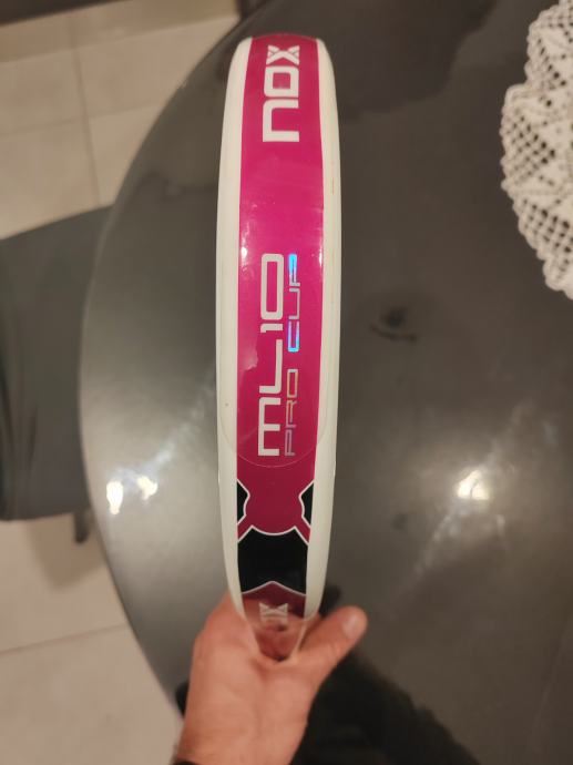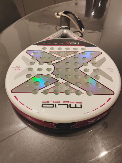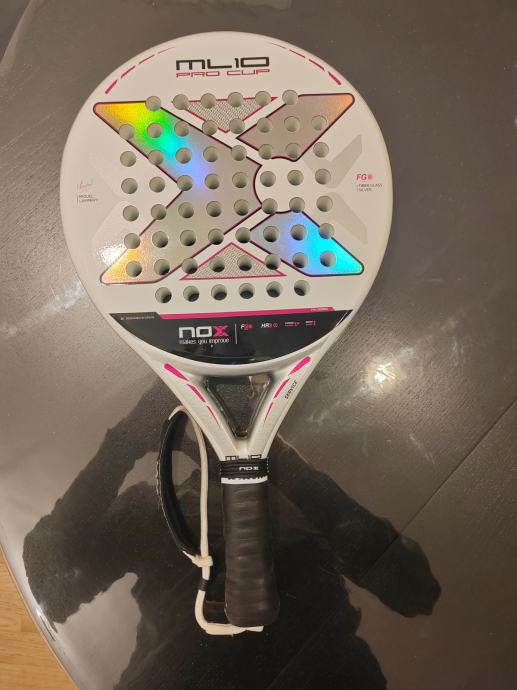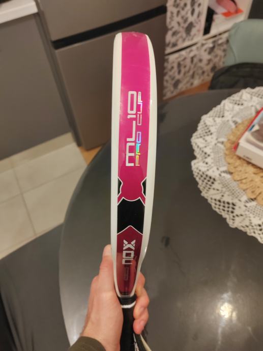 Nox reket za padel, igrano s njim 5 puta, stavljen overgrip i zaštita na vrh reketa. Karakteristike reketa možete vidjeti na linku ispod:
