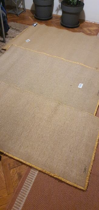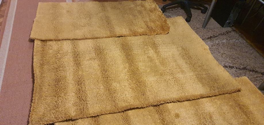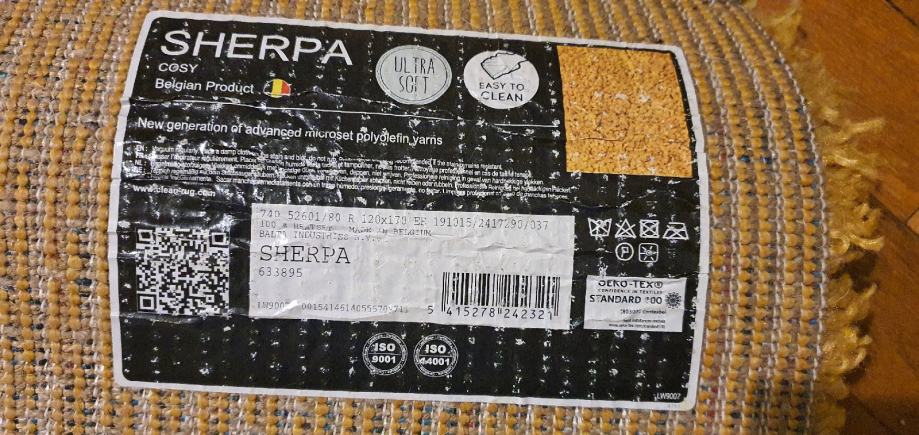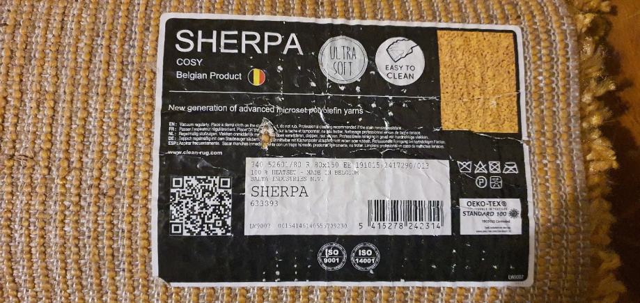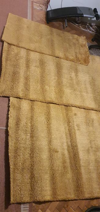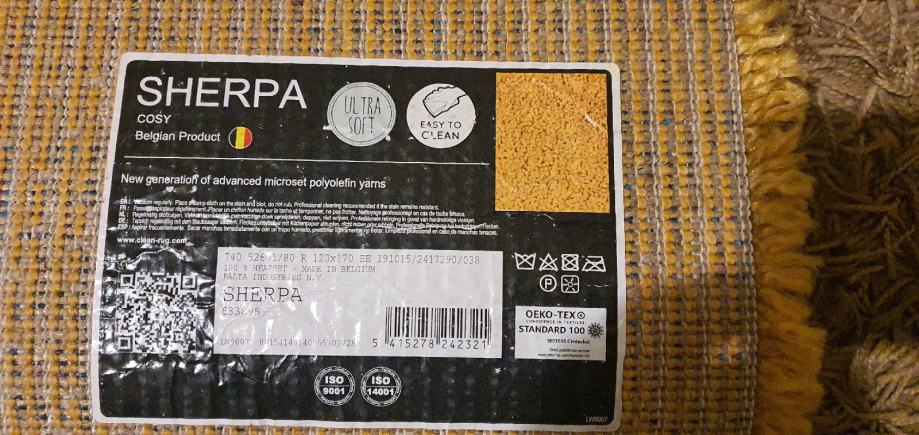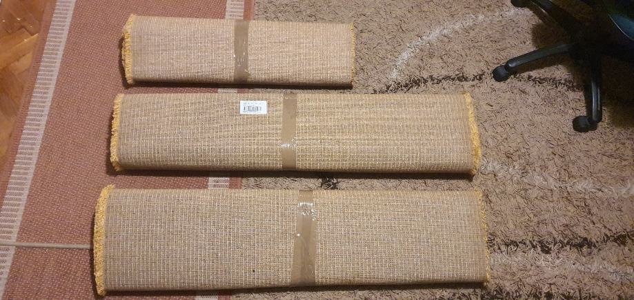 1 belgijski tepih staza Sherpa, 80x150. Kupljeno u Emmezeti, kratko korišteno, kao novo. Prodajem radi neuklapanja u interier. Oprano i složeno. Nejednakosti boja vidljive na slikama tragovi su kako je tepih bio smotan i nestati će razmotavanjem tepiha. Ostala je samo jedna staza, ostalo je prodano.