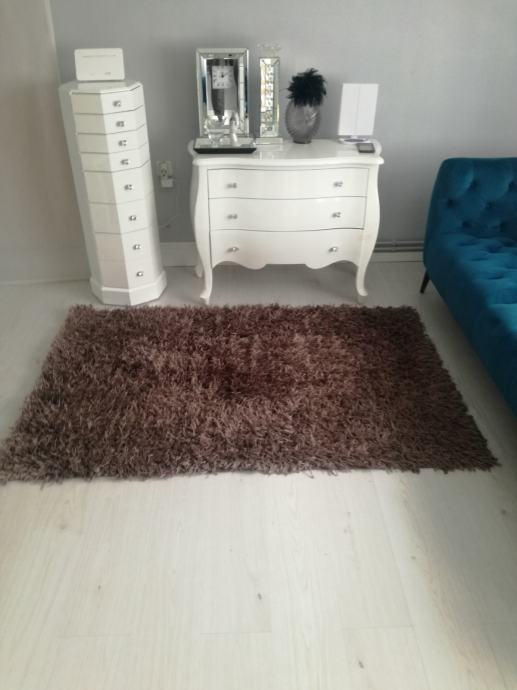 Prodajem Esprit tepihe u kompletu ili pojedinačno.Veći tepih je dimenzija 170x240 cm.a manji 120x180cm.Tepisi su smeđe boje,očuvani I povoljni.Cijena većeg tepiha je 60e a manjeg 40e.Cijene novih moguće je provjeriti na etiketi sa zadnje strane tepiha.Za kupnju oba tepiha cijena 70 eura.