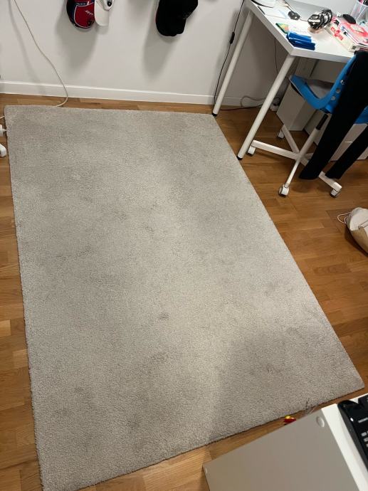 Prodajem tepih iz Ikee dimenzija 195x133, bio na redovitom kemijskom čišćenju u 12. mjesecu 2025 gdje je dobio mrlje SAMO S DONJE STRANE. Gornja strana očuvana i bez mrlja.