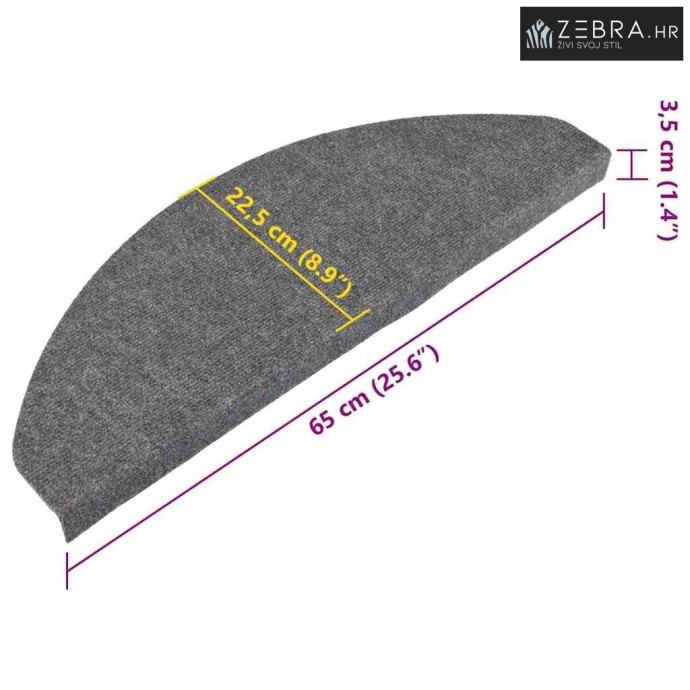 Ljepljivi tepisi za stepenice 15 kom 65x22,5x3,5 cm sivi - Siva 65 x 2