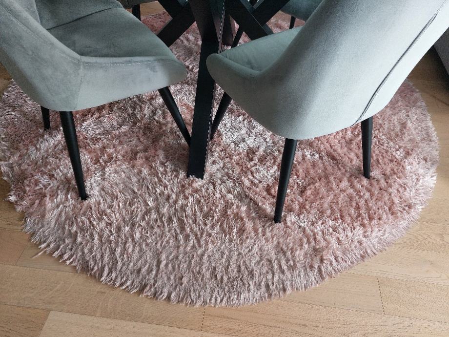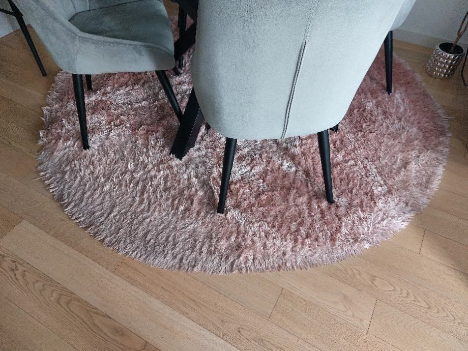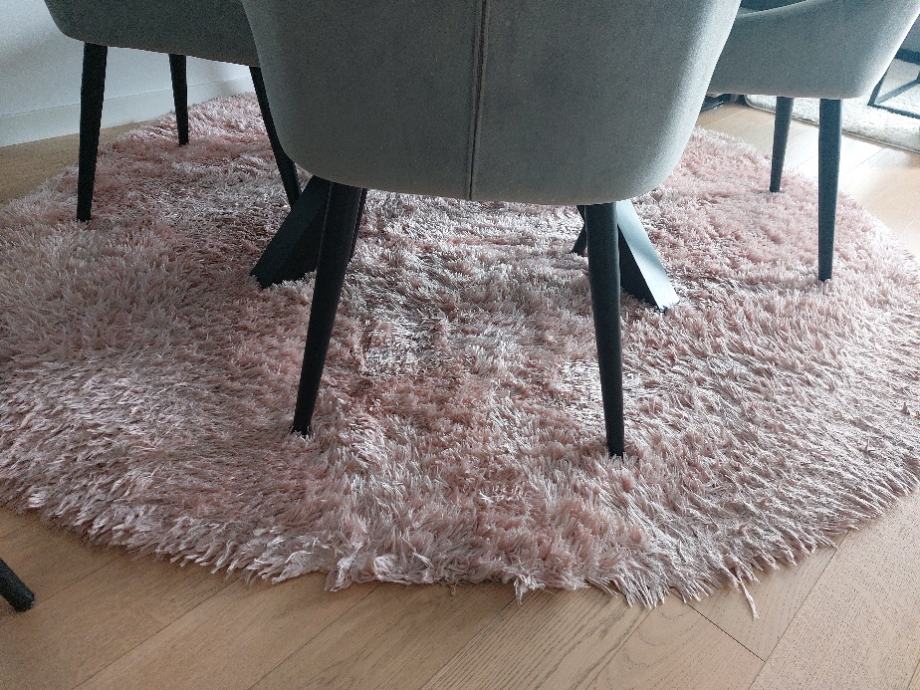 Prodajem okrugli blagovaonski tepih, promjer 200cm, prljavo roza boje, utaban na jednom mjestu.