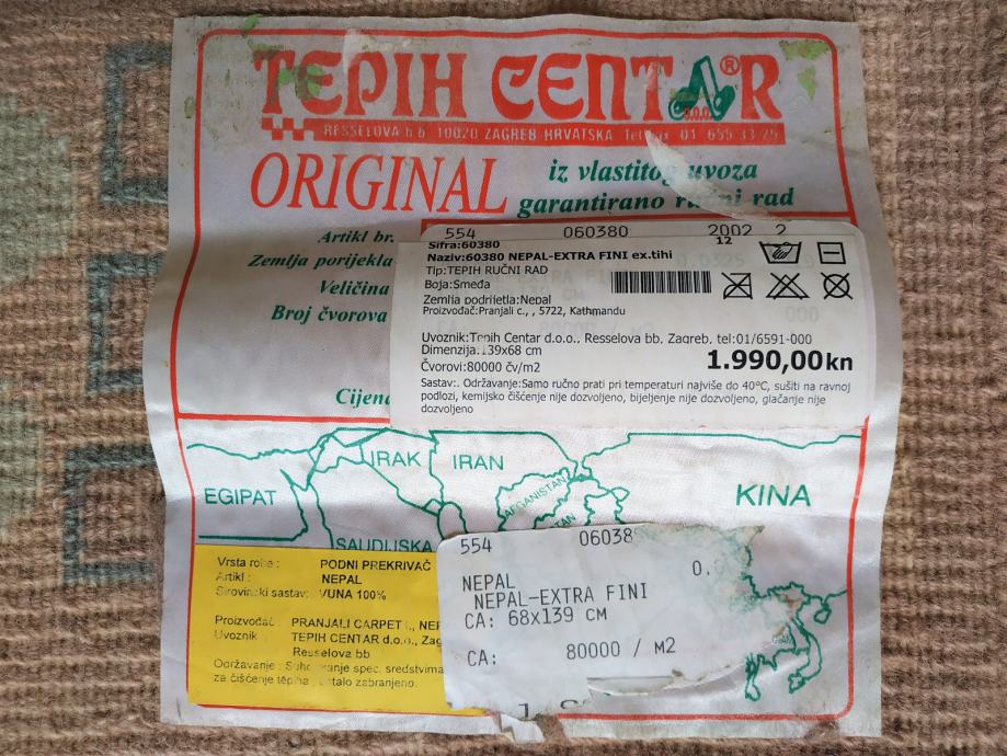 Orijentalni tepih porijeklom iz Nepala, Kathmandu, ručni rad od čiste vune 100 %.