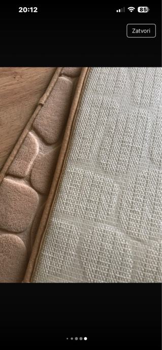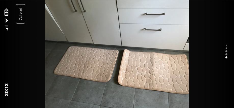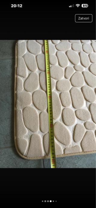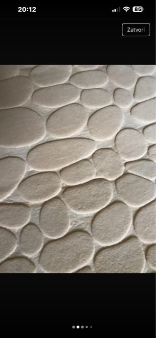 Prodajem novi set od dvije prostirke s reljefnim uzorkom oblutaka. Prostirke su krem/bež boje, mekane i ugodne na dodir. Reljefna površina daje im lijep trodimenzionalni izgled. Set se sastoji od dvije prostirke različitih veličina, prikladne za kupaonicu ili hodnik.