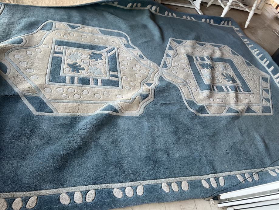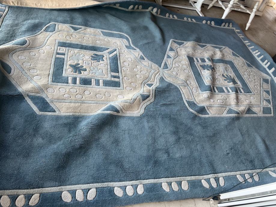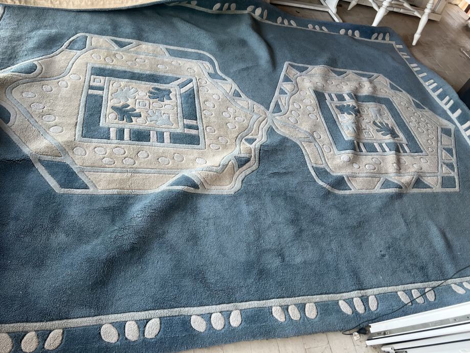 Prekrasan vuneni tepih debeli zelene boje unikatni kratko korišten.2,40x3,0 dimenzija.