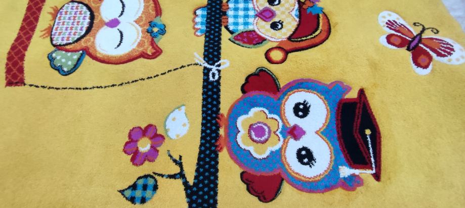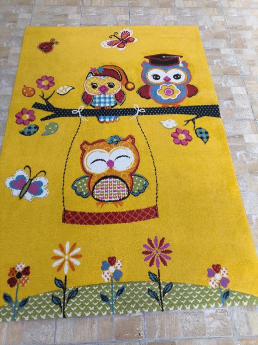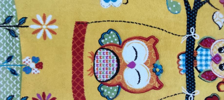 Dječji tepih kupljen u Lesnini prije par godina za 350 eura. Tepih je kratko korišten. Nije oštećen, osim na slici 6, nema mrlja i u jako dobrom je stanju. Debljina tepiha cca 1,5cm. Dimenzije tepiha 160x230cm.