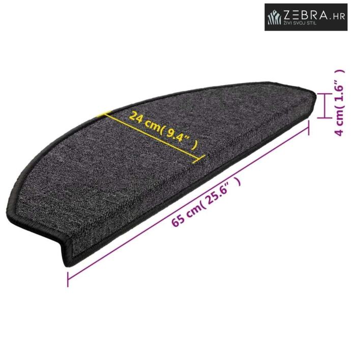 Prostirke za stepenice 10 kom 65x24x4 cm antracit poluokrugle velike -