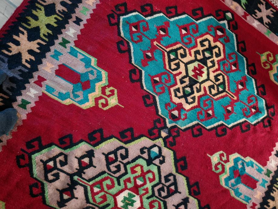 Ručno tkani stari ćilim od čiste runske vune. Dimenzije 300x200cm.