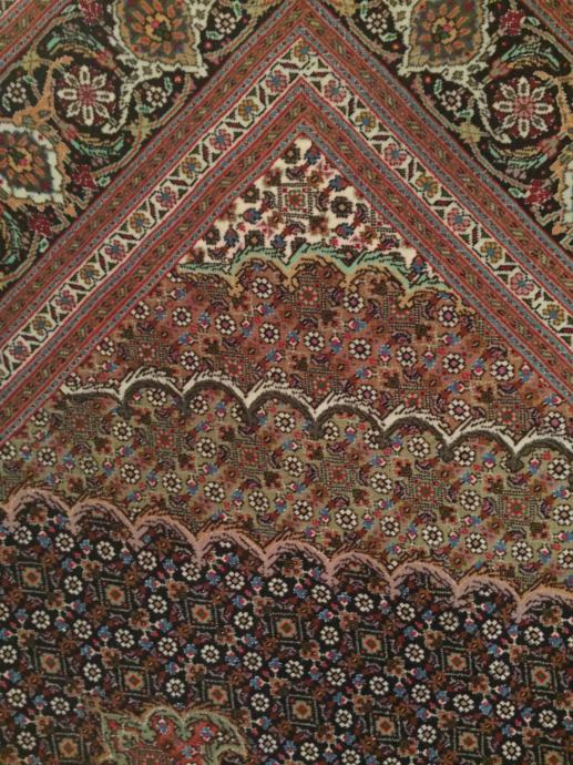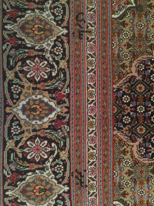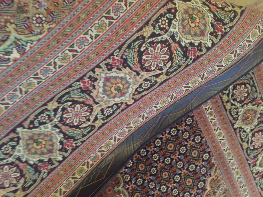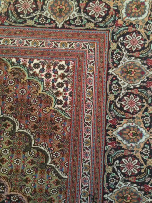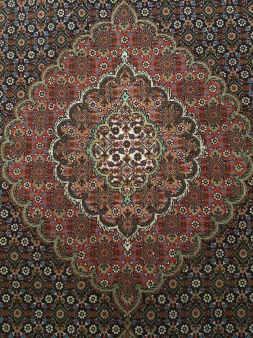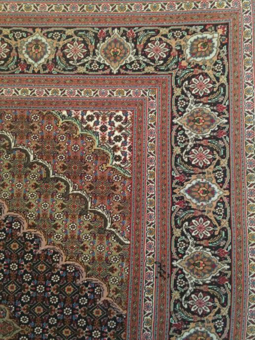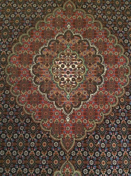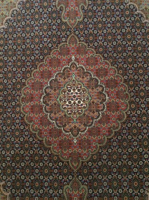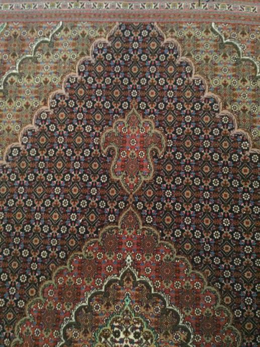 TABRIZ IRAN Perzijski vrlo efektan tepih lijepih nijansi bež smedjih i crvenih tonova sa karakterističnim motivom Tabriz tepiha...ručni rad ..mix prirodne vune i svile..prirodne boje..na licu tepiha utkan i potpis majstora izrade ...pozadina gotovo identična gornjištu tepiha...175cmX220 cm..kožna protuklizna traka ..nekorišten..