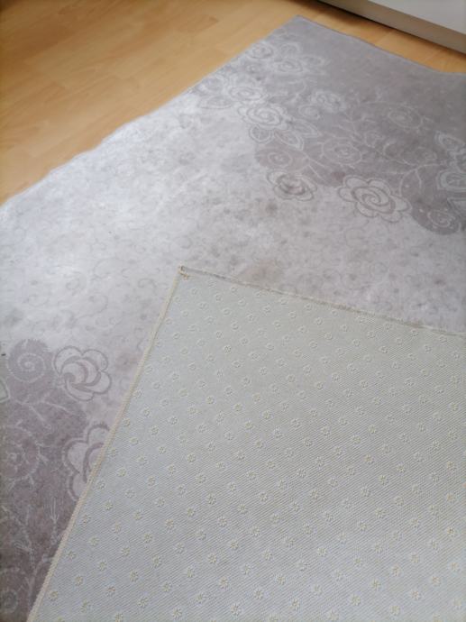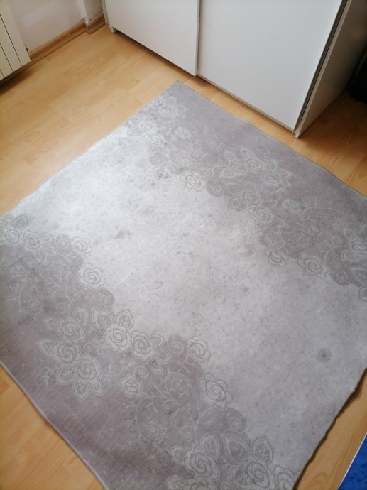 Korišteni tepih kvadratnog oblika, dimenzija 160 x 160 cm, niski flor.