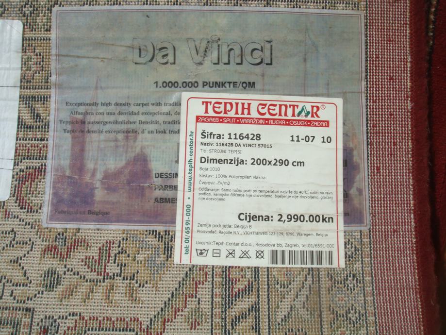 Prodajem potpuno novi tepih DA VINCI 200x290 cm za 250 eura (plaćeno 410 eura)