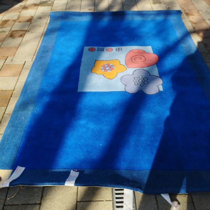 Tepih je dobro očuvan , kvalitetan ,pogodan za dječiju sobu ,dekorativan ,lijep i za druge prostore. Dimenzije su 160x200cm. Na slici su pregibi vidljivi, bio je umotan u rolu, jer nije puno korišten.