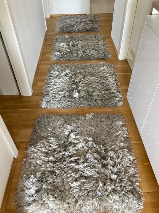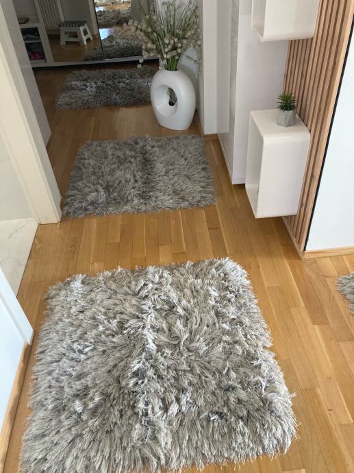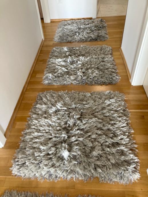 Veliki tepih za dnevni boravak Shaggy silk , kratko korišten i 6 kom staza za hodnik. Mali tepisi su veličine 80x 80, a veliki 140x200. Mali su plaćani po 25 eura svaki. Prodajem sve zajedno za 100 eura i ne odvajam zasebno.