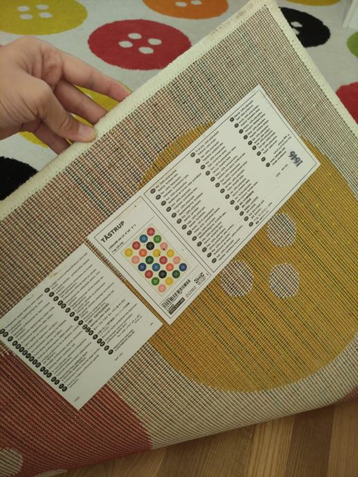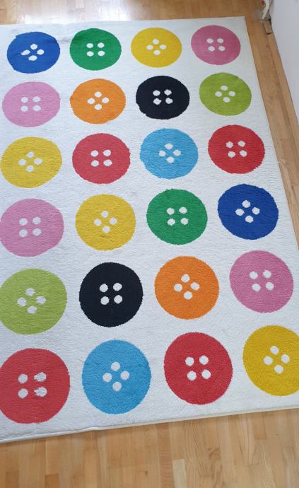 Tepih je dimenzija 133x195cm, težine 7kg i mekan za hodanje. Prigušuje zvukove. Sintetički materijal, pa je izdržljiv, otporan na mrlje i lako se čisti.