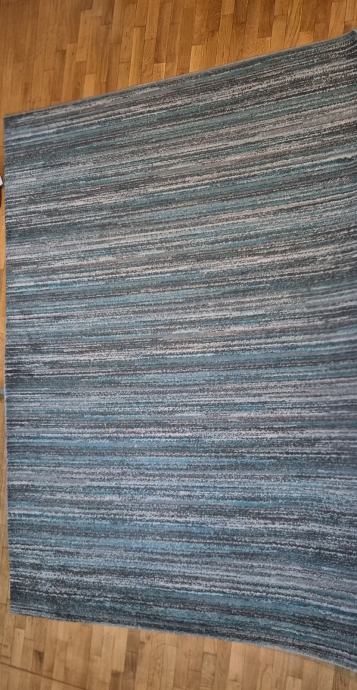 Prodajem tepih u plavim tonovima s prugastim uzorkom u nijansama plave, sive, bež i tirkizne boje. Ravni, horizontalni uzorak daje mu moderan i neutralan izgled koji se lako uklapa u različite prostore. Veličina tepiha je 160x230.