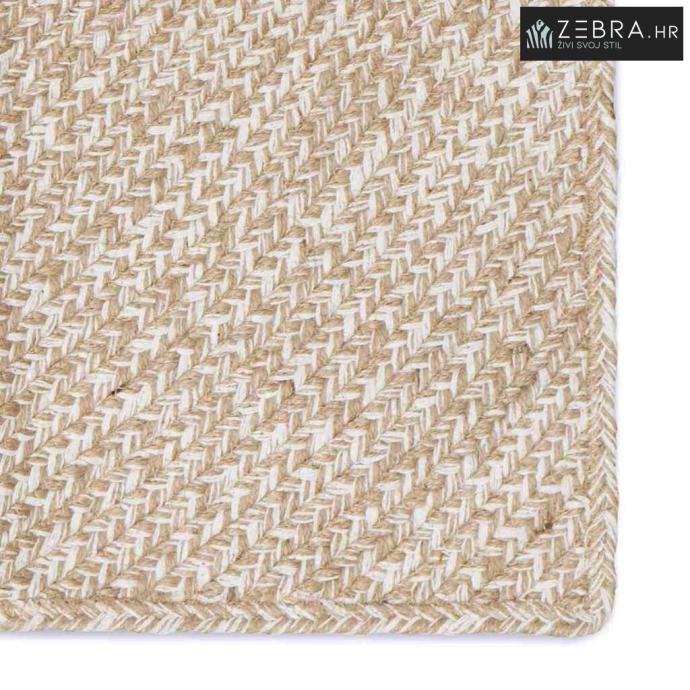 Prirodni materijal jute Ovaj tepih je izrađen od visoko kvalitetne jute, dodajući prirodnu šarm i održivost tvojem interijeru. Jutina vlakna pomažu u održavanju svježeg izgleda i izdržljivosti kroz svakodnevnu upotrebu. Ovo čini tepih odličnim izborom koji ne žrtvuje estetiku ili otpornost.