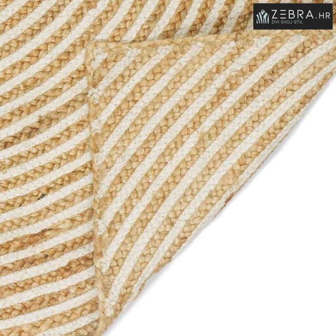 Ovaj elegantni tepih je napravljen od prirodnih vlakana jute i pruža izdržljiv dodatak vašem prostoru. Moderni dizajn zrači jednostavnošću i funkcionalnošću, što ga čini idealnim komadom za savremene interijere. Okrugli oblik mu omogućava lako uklapanje u različite stilove, a ručni rad nudi jedinstvenu estetsku privlačnost. Posebno je dizajniran za unutarnju upotrebu, unapređuje svaku dnevnu sobu spojem udobnosti i stila, stvarajući ugodnu i pozivajuću atmosferu.