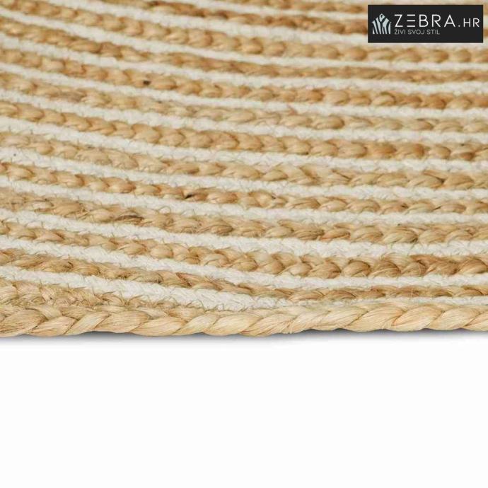 Ovaj elegantni tepih je napravljen od prirodnih vlakana jute i pruža izdržljiv dodatak vašem prostoru. Moderni dizajn zrači jednostavnošću i funkcionalnošću, što ga čini idealnim komadom za savremene interijere. Okrugli oblik mu omogućava lako uklapanje u različite stilove, a ručni rad nudi jedinstvenu estetsku privlačnost. Posebno je dizajniran za unutarnju upotrebu, unapređuje svaku dnevnu sobu spojem udobnosti i stila, stvarajući ugodnu i pozivajuću atmosferu.