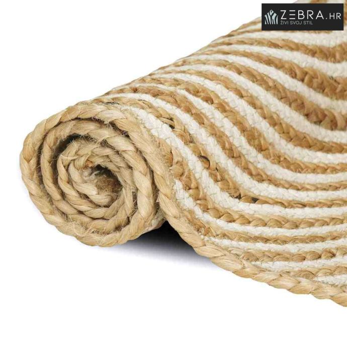 Ovaj elegantni tepih je napravljen od prirodnih vlakana jute i pruža izdržljiv dodatak vašem prostoru. Moderni dizajn zrači jednostavnošću i funkcionalnošću, što ga čini idealnim komadom za savremene interijere. Okrugli oblik mu omogućava lako uklapanje u različite stilove, a ručni rad nudi jedinstvenu estetsku privlačnost. Posebno je dizajniran za unutarnju upotrebu, unapređuje svaku dnevnu sobu spojem udobnosti i stila, stvarajući ugodnu i pozivajuću atmosferu.