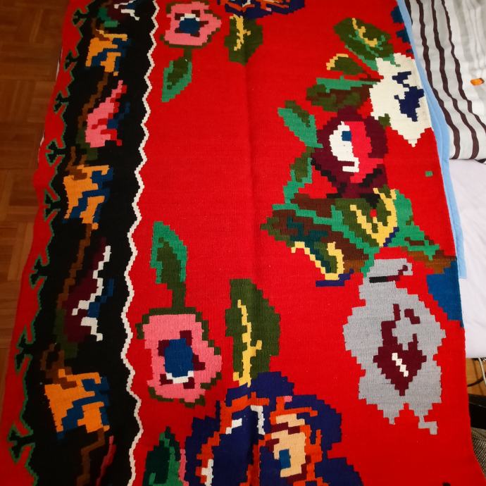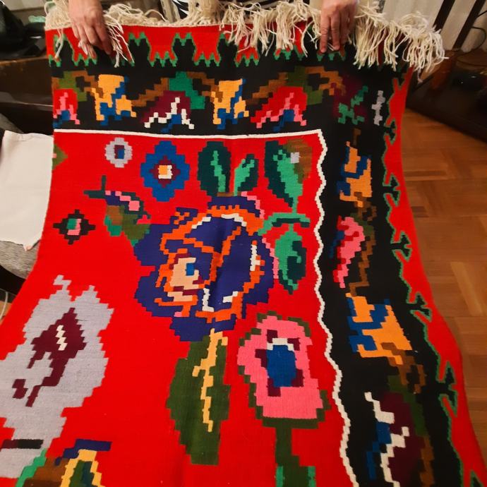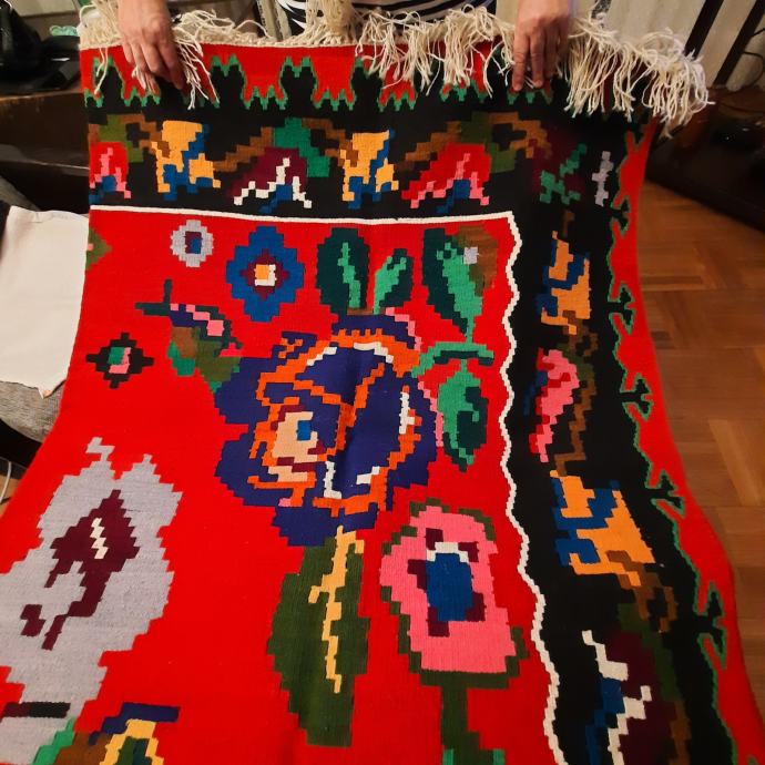 Unikatni ručno izrađen tepih na tkalačkom stanu od čiste runske vune. Dimenzije tepiha 3×2 metra. Tepih je nekorišten. Pogodan za alergičare. Tepih uzivo je puno ljepši i ugodnijih boja.