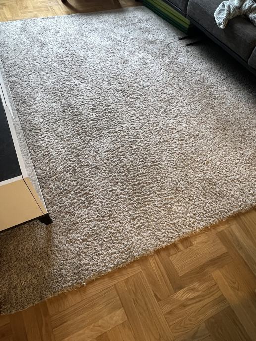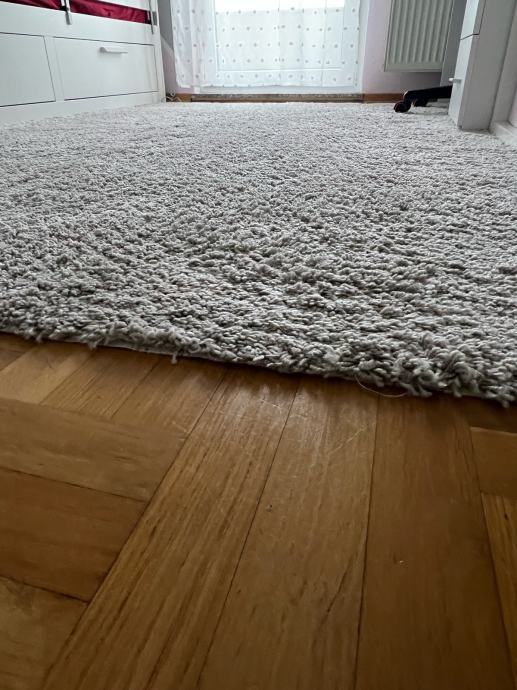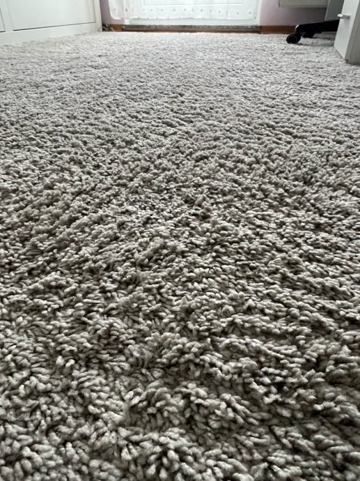 Prodajem sivi čupavi tepih. Lagan za održavanje i usisavanje. Mekan i ugodan na dodir.