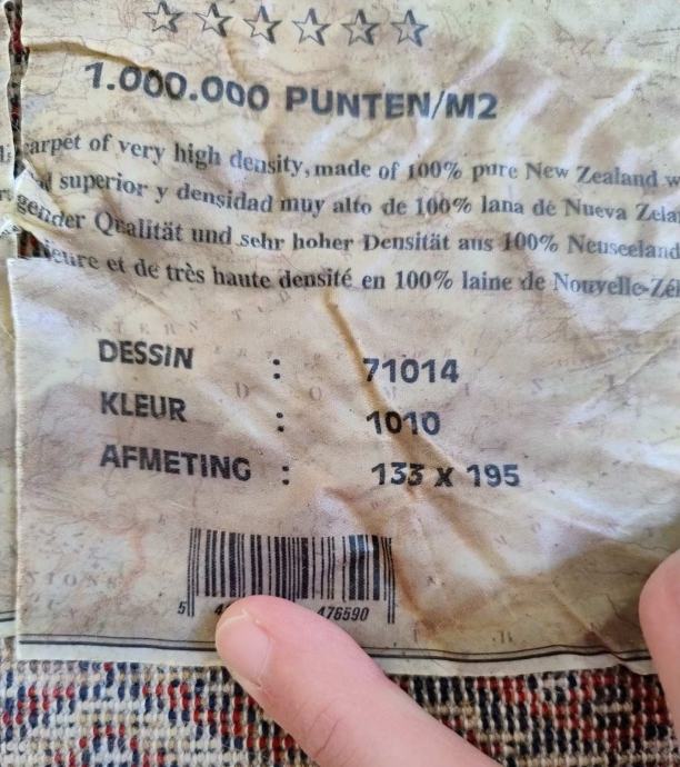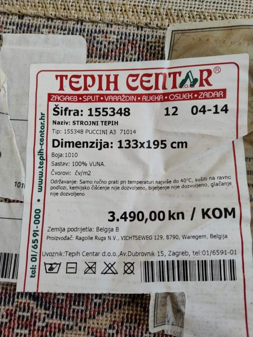 Riječ je o strojnom tepihu Puccini A3 (133x195 cm) izrađenom od 100% čiste novozelandske vune, s gustoćom od 1.000.000 bodova po kvadratnom metru. Tepih je jako malo korišten i u odličnom stanju.
