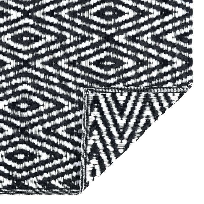 Ovaj Tepih za vanjsku upotrebu 'ARAKIL' kombinira stil i funkcionalnost za tvoje vanjske prostore, pružajući udobnost gdje god ga staviš. S dimenzijama 300 x 400 cm, njegova texturirana površina i trendy crno-bijeli geometrijski dizajn čine ga odličnim dodatkom za svako vanjsko okupljanje - piknike, roštilje, dane na plaži ili kampiranje.