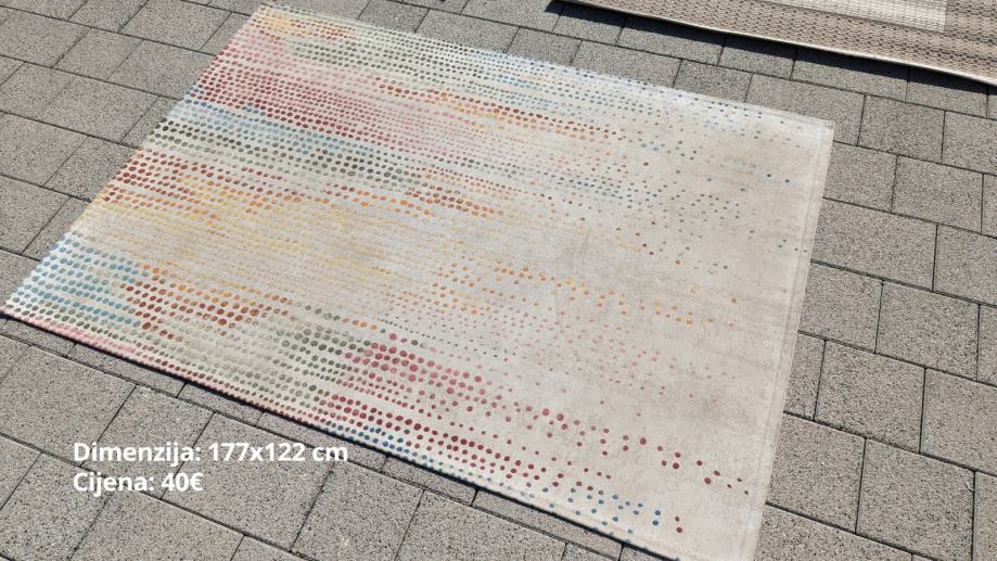 Prodajem rabljene tepihe, nisu oštećeni, samo trebaju eventualno čišćenje. Svi tepisi su pogodni za podno grijanje. Na slikama su dimenzije i cijene, a navodim ih i ovdje, redani su po veličini (tako i slike idu po redu):