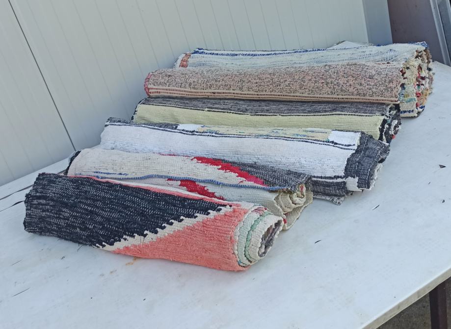 Prodajem 10 kom. sačuvanih unikatnih tepih-staza. Različitih dimenzija i motiva, ručno tkanih na tkalačkom stanu. Cijena za dužni metar je 15€