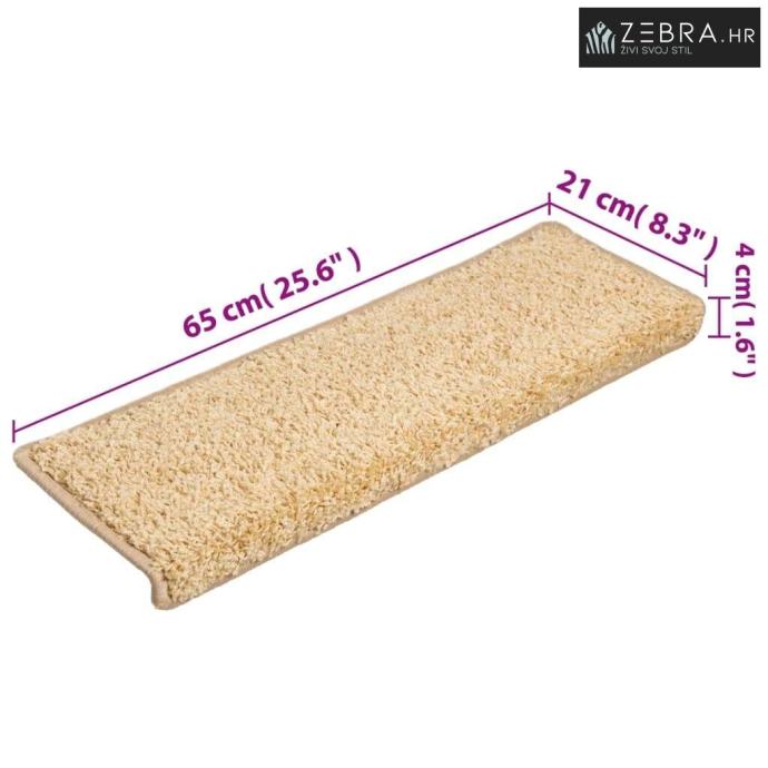 Prostirke za stepenice 15 kom 65x21x4 cm krem pravokutni rub - Krema 6