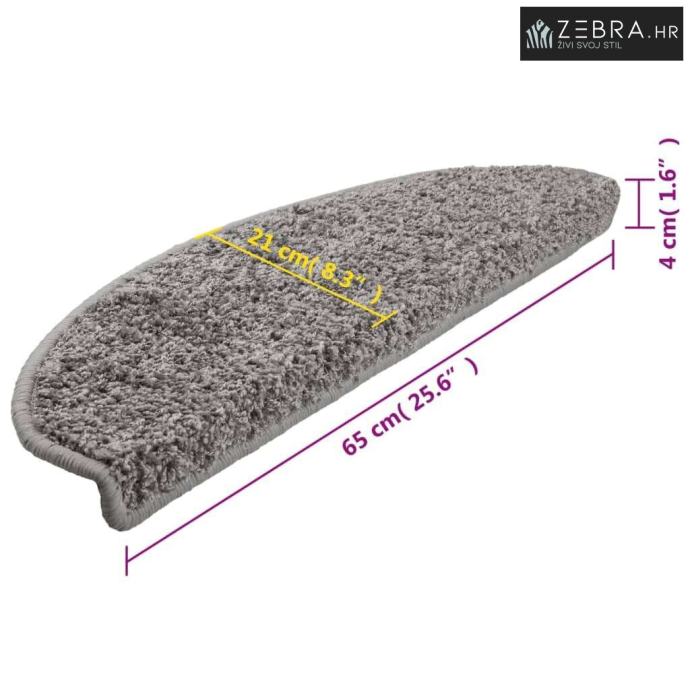Prostirke za stepenice 15 kom 65x21x4 cm sive poluokrugle velike - Siv