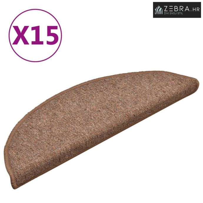 Tepisi za stepenice 15 kom smeđi 56 x 17 x 3 cm - Smeđa 56 x 17 x 3 cm