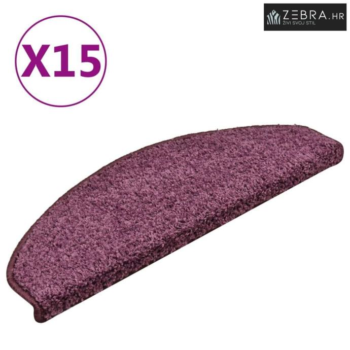 Prostirke za stepenice 15 kom 65x21x4 cm tamnoljubičaste poluokrugle v