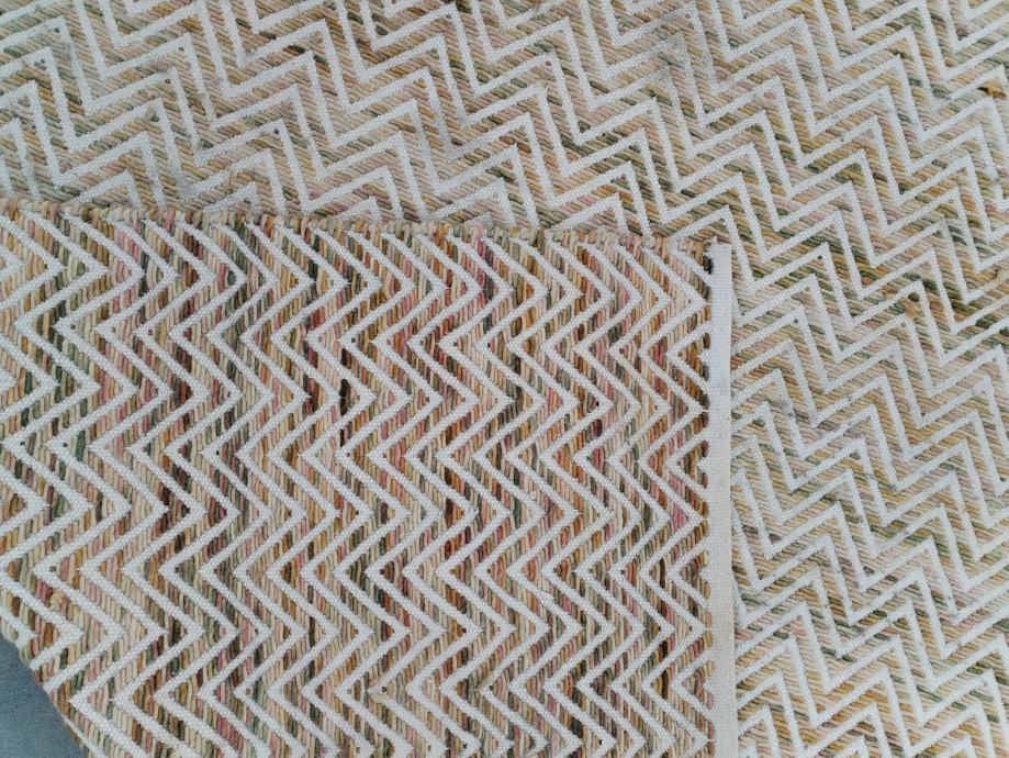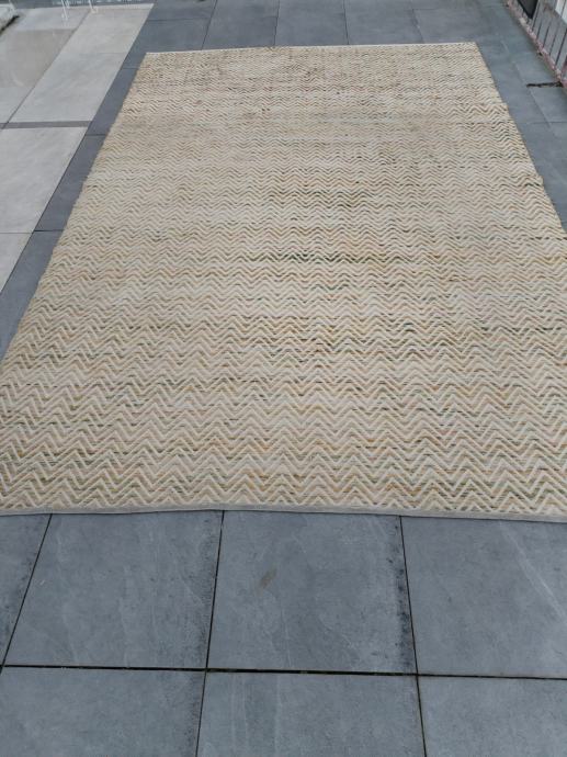 Dizajnerski vuneni tepih 2x3m, toplih boja. Potrebno pranje. Donedavno bio u dnevnom boravku prodajem radi preuređenja