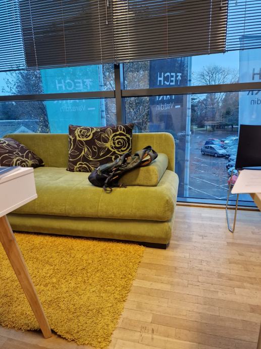 Mekani, čupavi i na dodir vrlo ugodan žuti tepih. Kratko korišten u uredu, praktički nov.